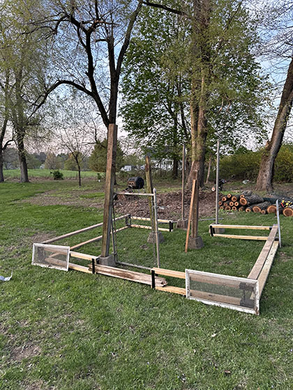 Before we could build, we had to do our homework. In Raritan Township, you're allowed to keep up to five chickens (no roosters) for personal use, but there are some clear rules: the coop must have a 30-foot setback from property lines, a 6-foot perimeter fence, proper ventilation, and must not exceed 100 square feet for the coop and 100 square feet for the run.
