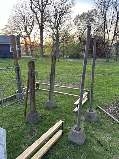 New materials included: - Six 4x5x6' posts - Twenty 8' 2x4s - Fifteen 1x4x8 boards